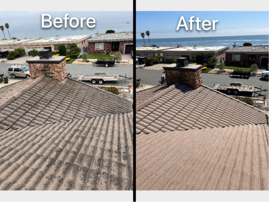 A homeowner who wanted their home looking good once again called us for that exact reason. Over the years their concrete roof had accumulated black, green, orange, and yellow algae and lichen all over it. Needless to say they gave us a call here at Pinnacle Exterior Solutions where I assured them that they had called the right company. With our top of the line equipment, good work ethic, and properly trained technicians we were able to restore the roof to its beauty. All of the organic material was treated and removed so this roof will look be looking like new for a very long time. We are happy to say that we left another customer happy and satisfied!